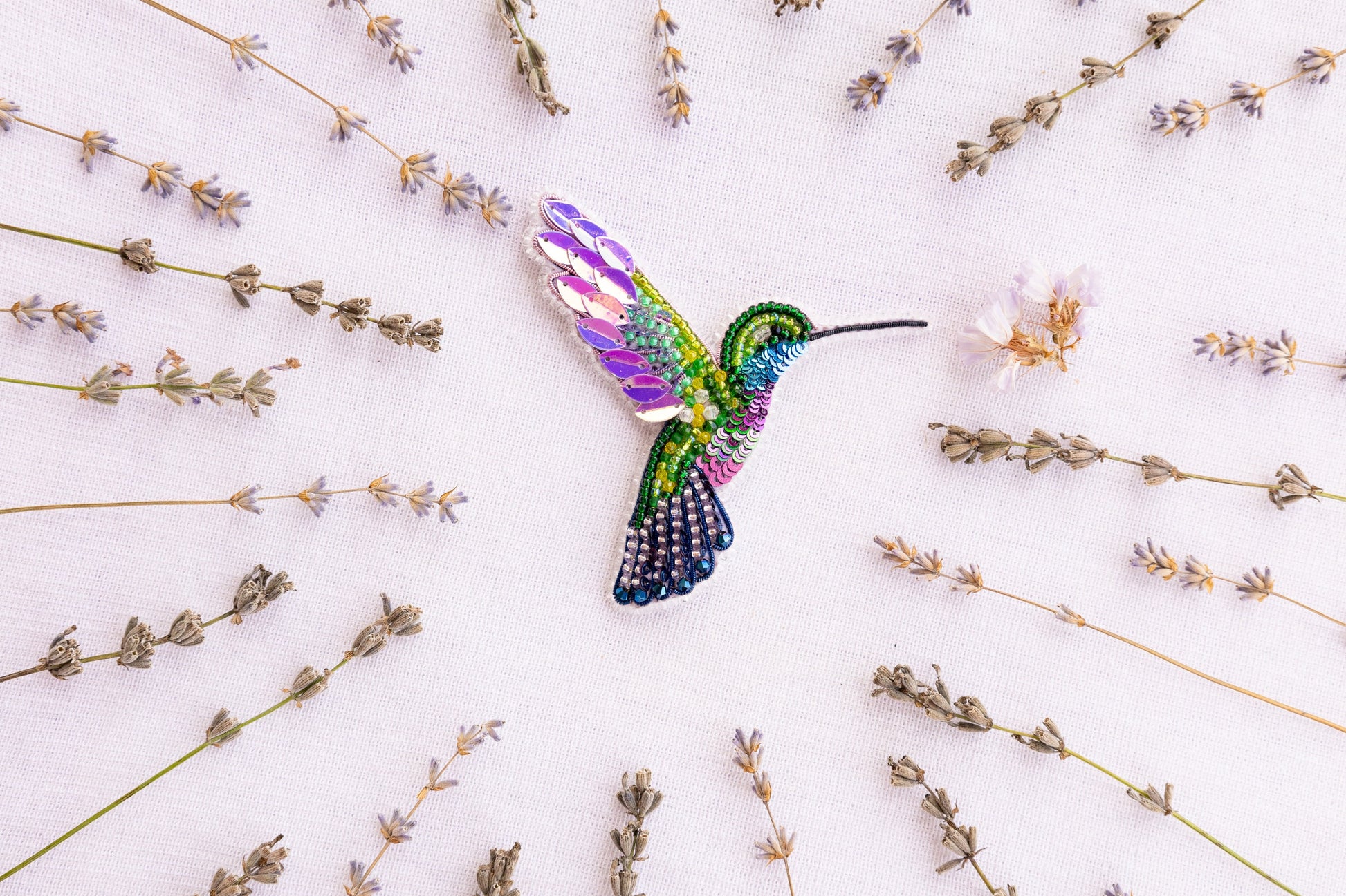 Create a gorgeous hummingbird brooch or pendant with our DIY beading kit! You will discover the captivating art of bead embroidery by practicing different techniques: bead and seed bead embroidery, embroidery with sequins, and tinsel embroidery. Our beadwork kit will help you to bring a stunning beaded hummingbird brooch to life while spending enjoyable hours of creativity.