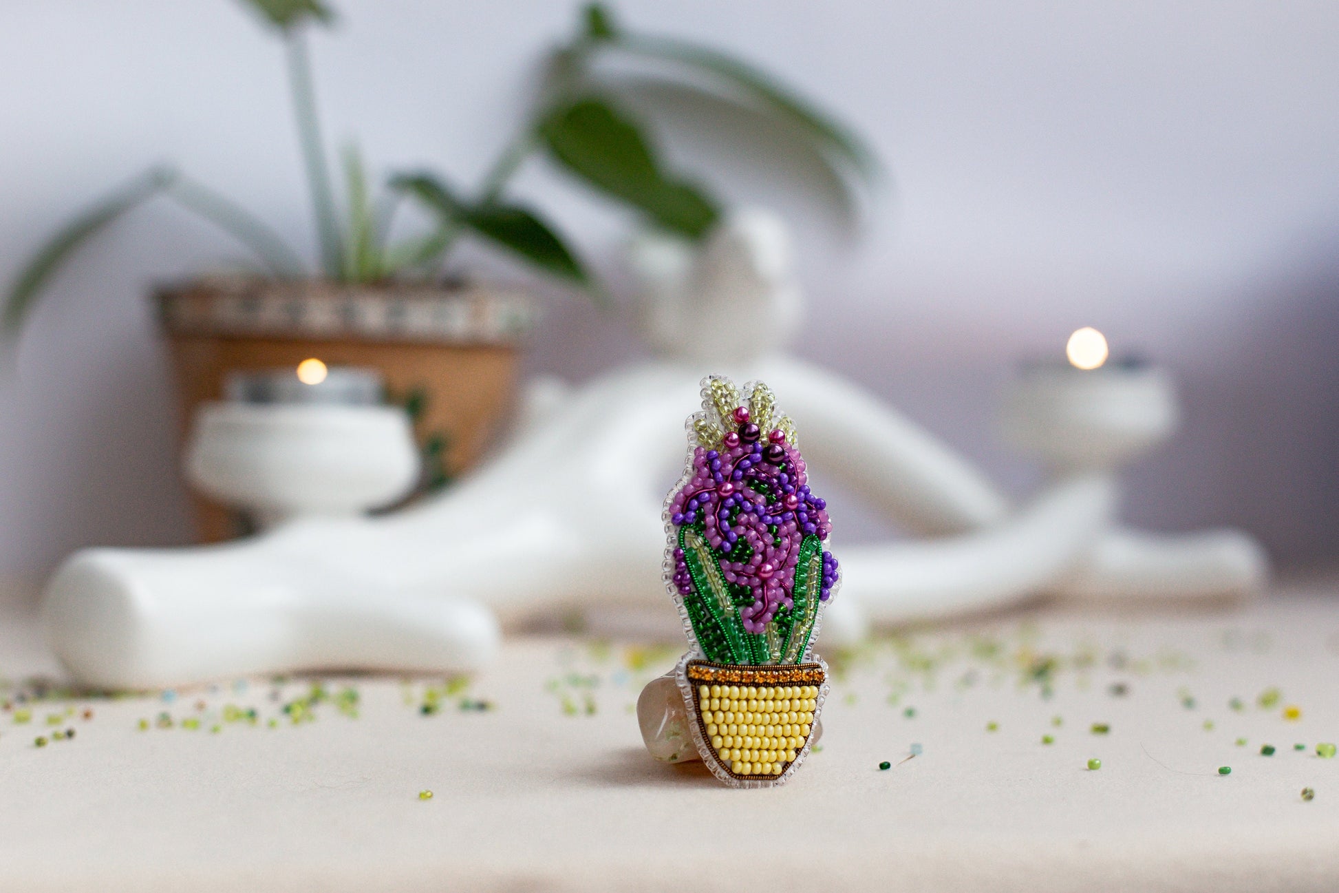 Hyacinth Bead embroidery kit. Seed Bead Brooch kit. DIY Craft kit. Beadweaving Kit. Needlework beading. Handmade Jewelry Making Kit