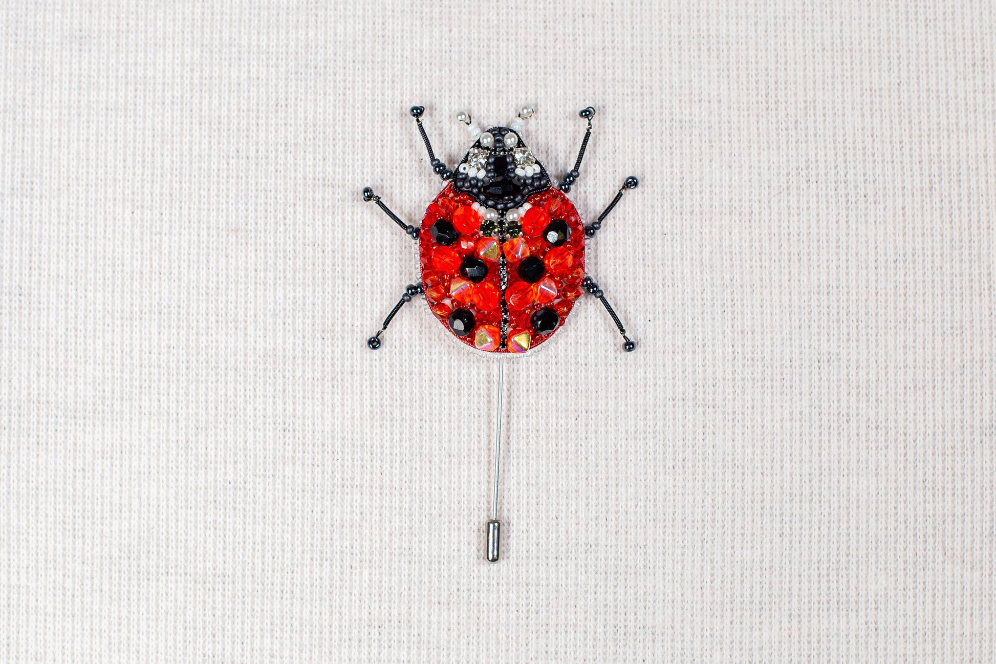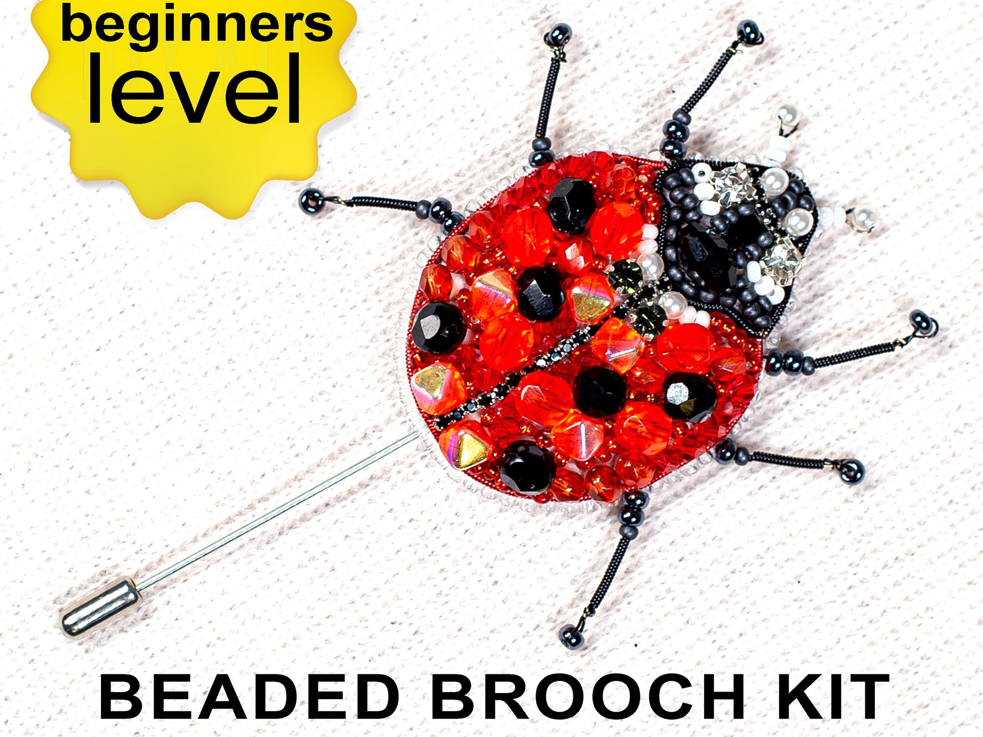 Try our DIY craft kit - bead embroidery kit set for making a unique bead brooch kit. We have a wonderful kit for all embroidery enthusiasts out there! Our beaded embroidery diy kit is perfect for creating a beautiful ladybug brooch or pendant. The ladybug is adorned with sparkling faceted beads on its back and features movable paws, adding a touch of charm to the finished product.