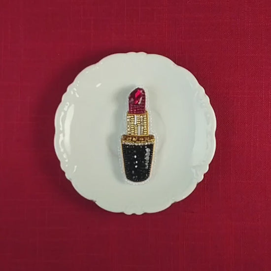 This playful lipstick brooch adds a touch of bold charm to your outfit. With sparkling reds, blacks, and metallic beads, it’s a must-have for lovers of all things glamorous. A great way to showcase your personality with style.