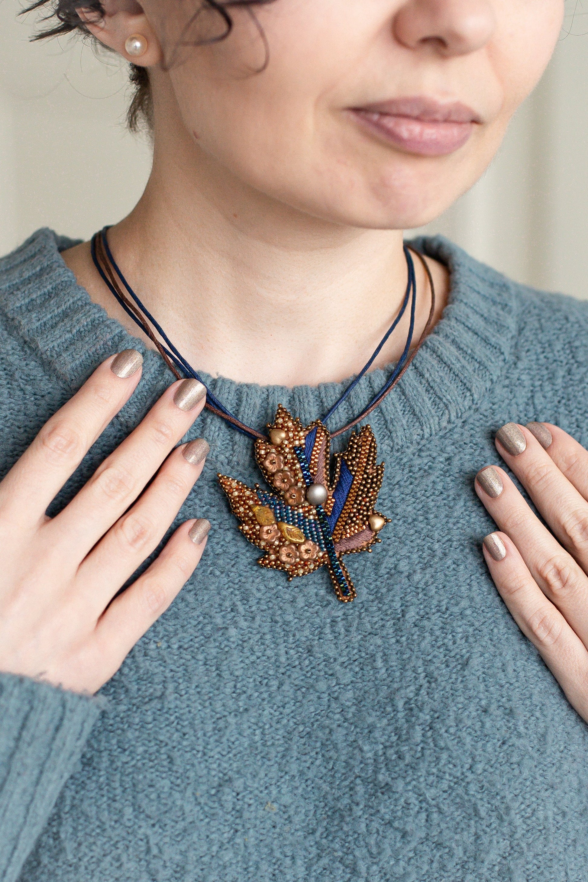 Maple Leaf Bead embroidery kit. Seed Bead Brooch kit. DIY Craft kit. Beadweaving Kit. Needlework beading. Handmade Jewelry Making Kit