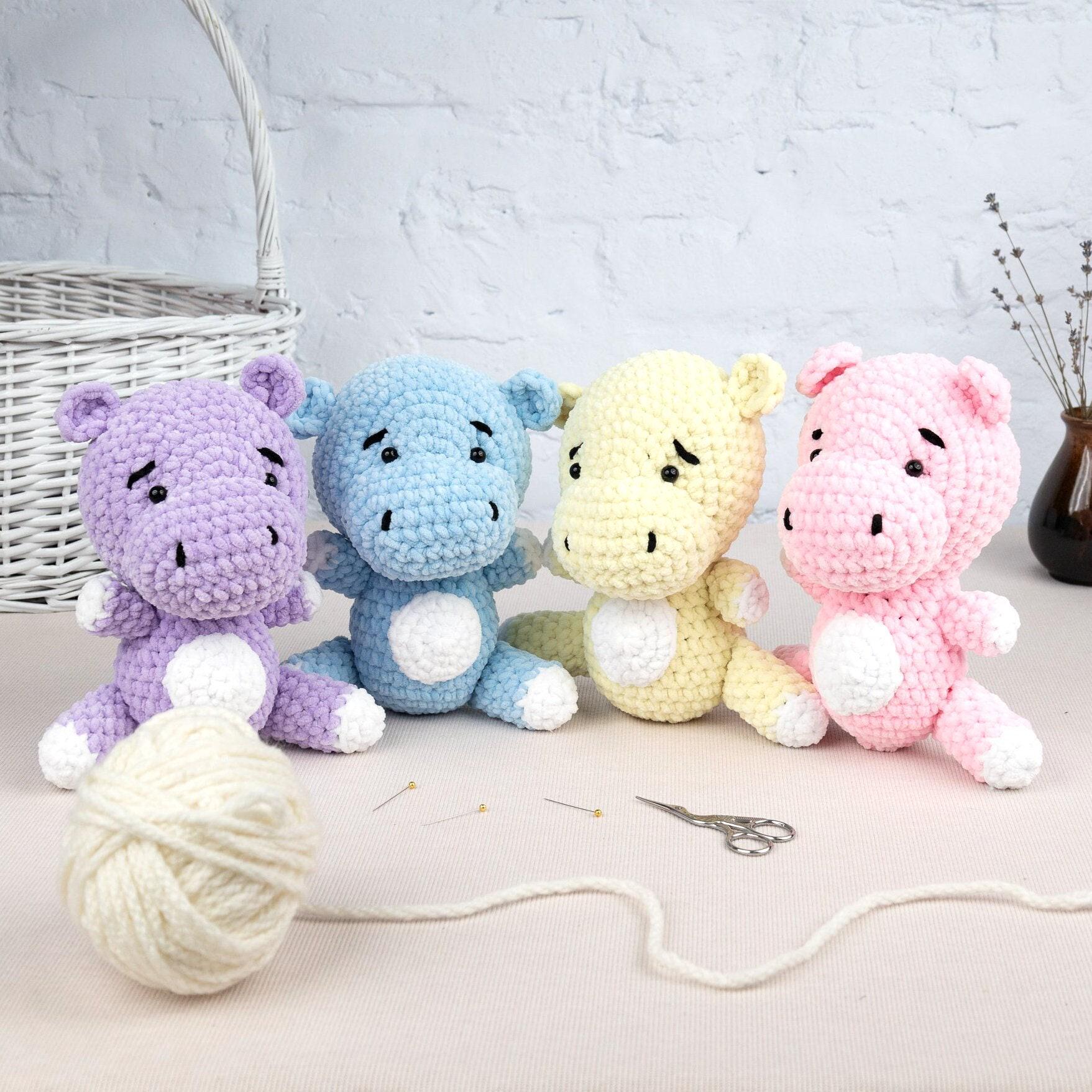 - Soft yarn in your choice of four colors including light pink crochet hippo shade