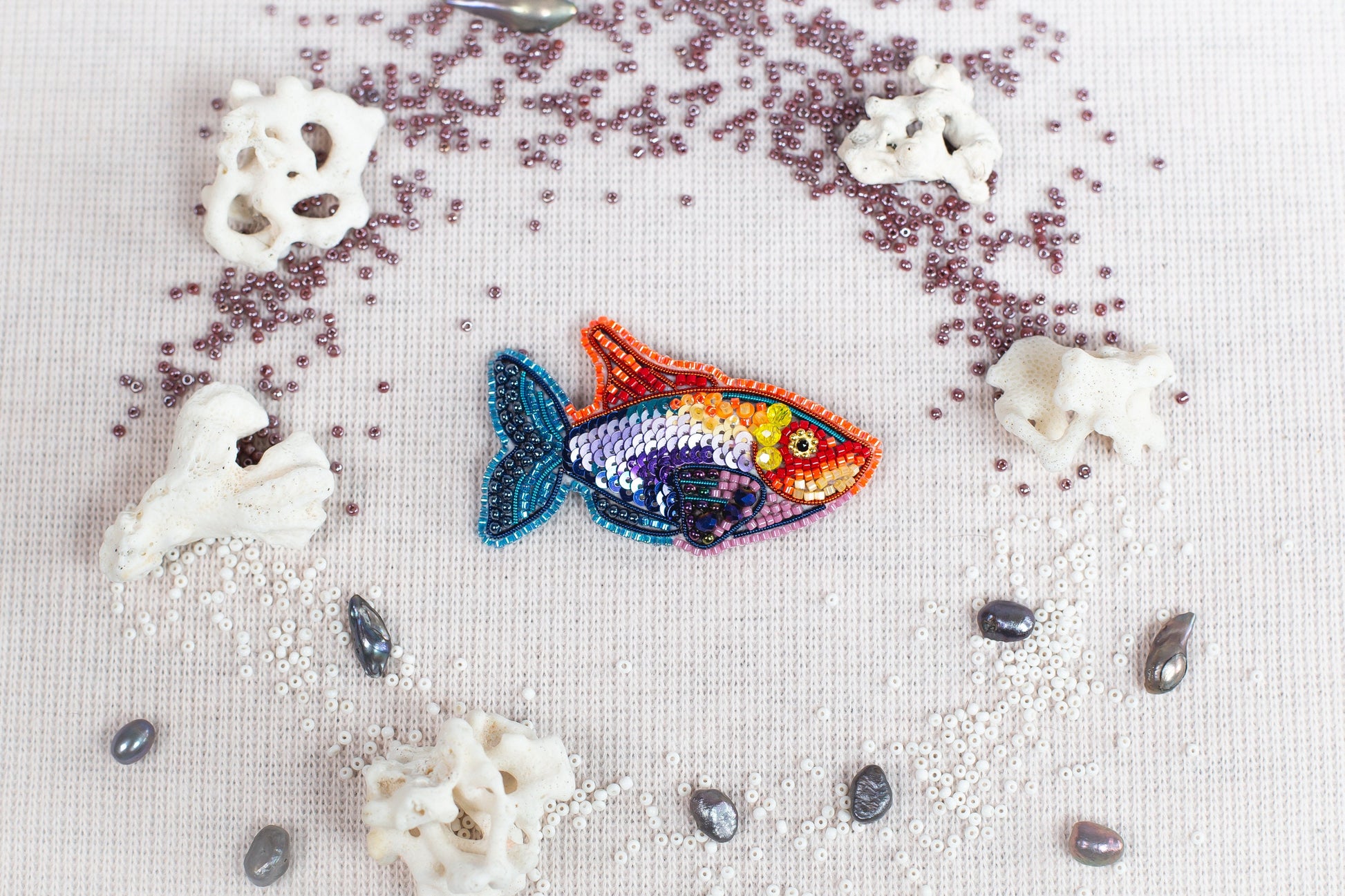Rainbow Fish Bead embroidery kit. Seed Bead Brooch kit. DIY Craft kit. Beadweaving Kit. Needlework beading. Handmade Jewelry Making Kit