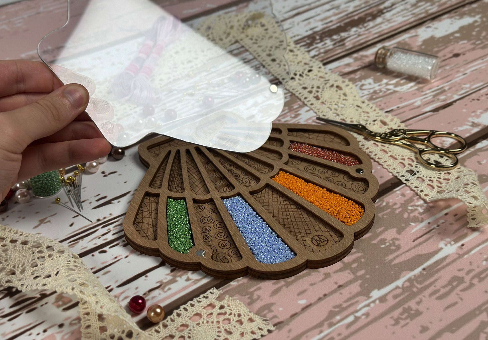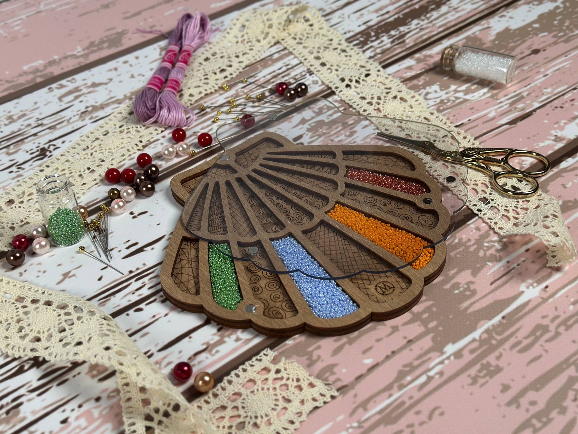 The Personalizable Seed Bead Organizer is a handmade wooden beading board designed to keep your beads neatly sorted and easily accessible, enhancing your beadwork experience. This seed bead organizer measures 7 x 7 inches (19 x 18 cm) and features 20 individual cells, providing ample space for sorting various bead colors and sizes. Crafted from durable plywood, this lightweight bead holder offers a compact bead container ideal for both beginners and experienced crafters seeking an efficient bead storage box. Its sturdy construction ensures long-lasting use, while the personalizable bead case allows you to customize the layout to fit your unique crafting needs.