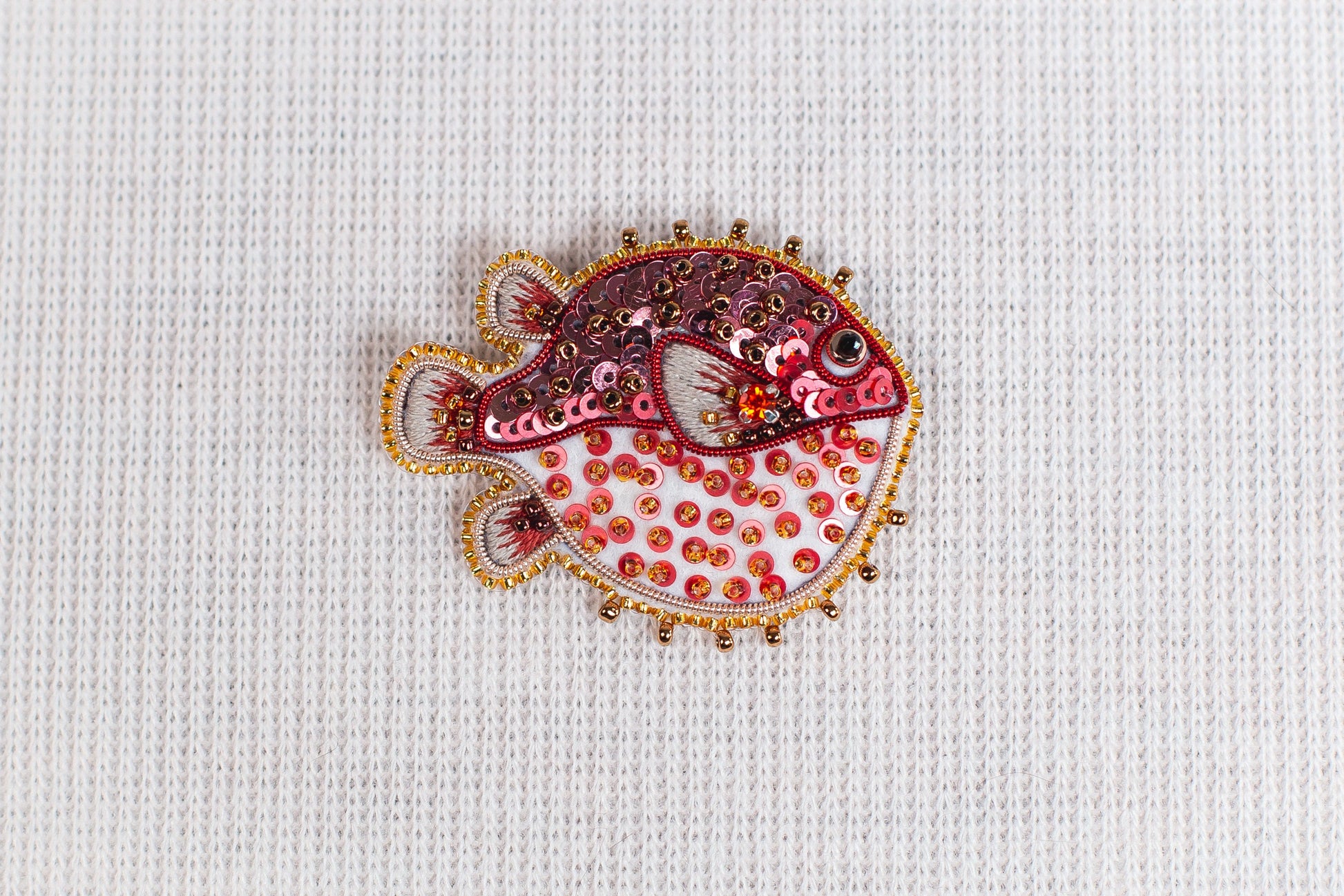 Try our DIY craft kit - bead embroidery kit set for making a unique bead brooch kit. Create your own ocean-themed jewelry collection of 4 stunning and colorful sea fish brooches – sparkling rainbow fish, golden-orange clown fish, beautiful silver-blue angelfish, and funny hedgehog fish. Our bead embroidery kits are complete packages with everything you need to create your unique and luxurious piece of beading jewelry. Each kit has specially designed patterns, high-quality Japanese and Czech beads, tinsel cord, multi-colored sequins, rhinestones, and other top-notch materials.