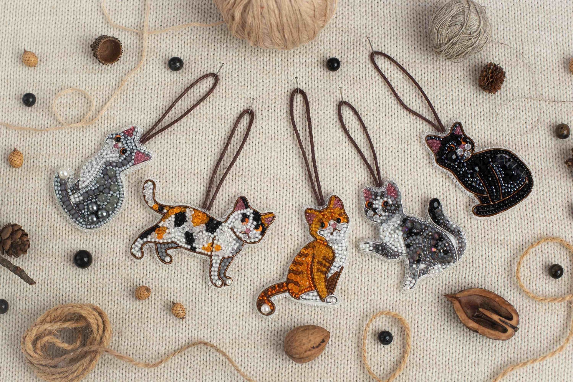 Set of 5 Cats DIY Beaded Brooches Kits, Craft kits, Beaded Cat Brooches, Jewelry Making Kits for Adults, Needlework beading