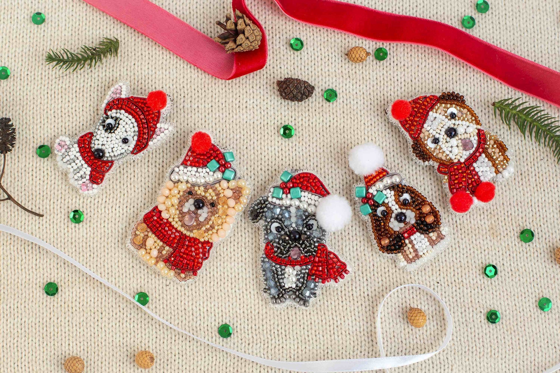 Set of 5 Christmas Dogs DIY Beaded Brooches Kits, Craft kits, Beaded Dog Brooches, Jewelry Making Kits for Adults, Needlework beading