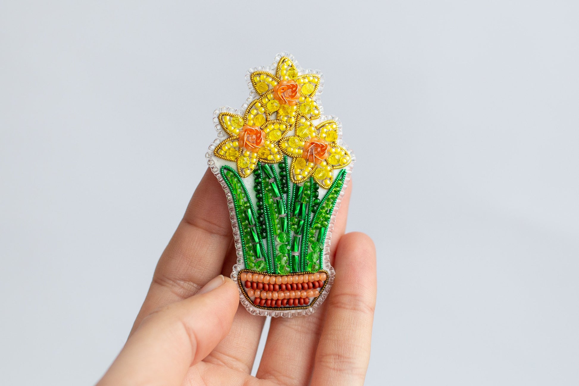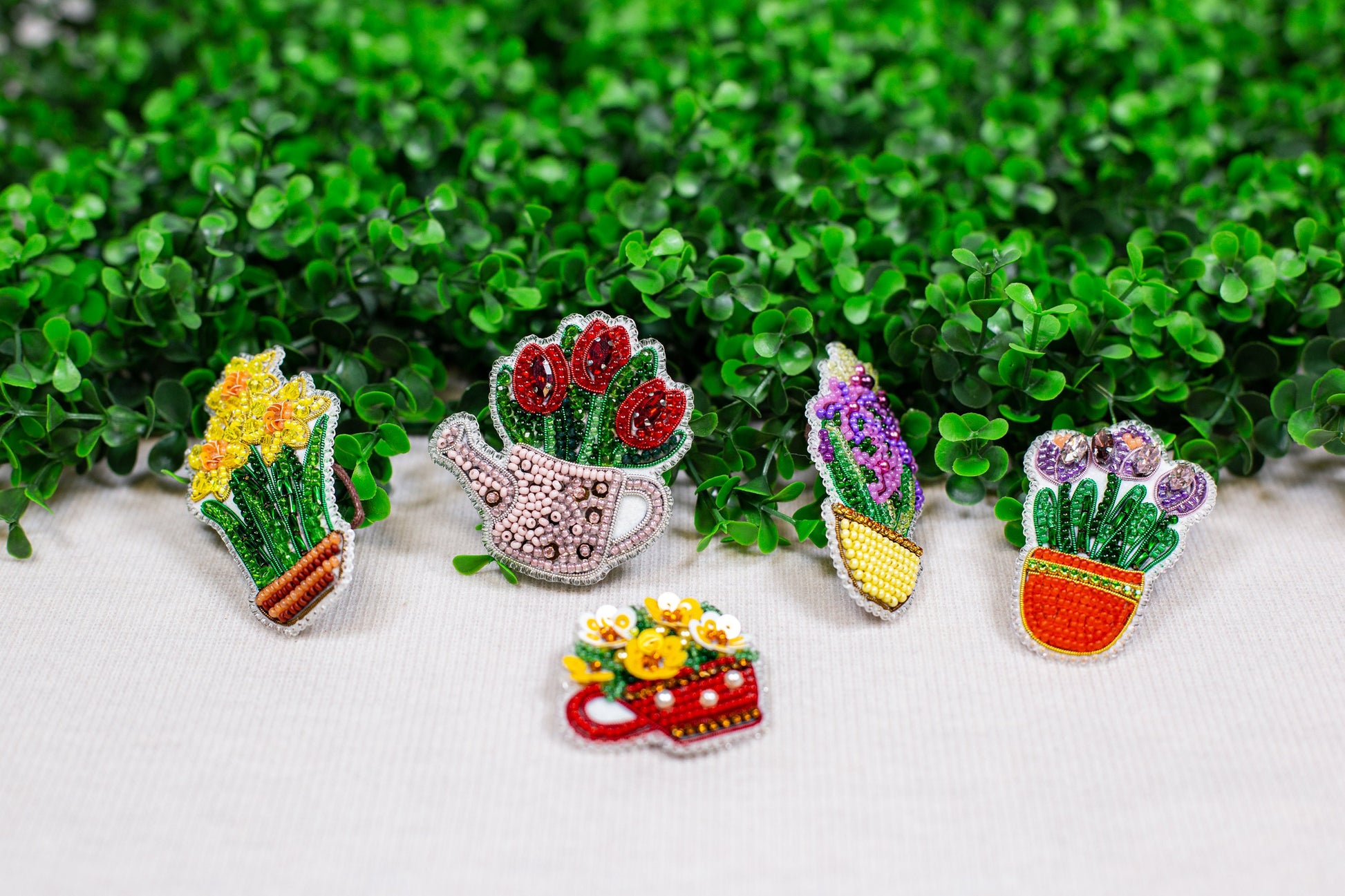Try our DIY craft kit - bead embroidery kit set for making a unique bead brooch kit. Handmade jewelry can add a touch of individuality and style to any wardrobe or living space, and can be a great way to express your creativity and personal aesthetic. Our DIY craft kits can make creating handmade jewelry easier and more convenient. Jewelry-making kits include all the materials and instructions you need to complete the project, making it easy to start without having to source materials or figure out the design independently. Here we offer you a selection of five different spring brooch designs. Each would be an excellent decoration for your outfit or a nice little gift to a friend or relative. Please choose the one you like or make your own small collection by taking it all.