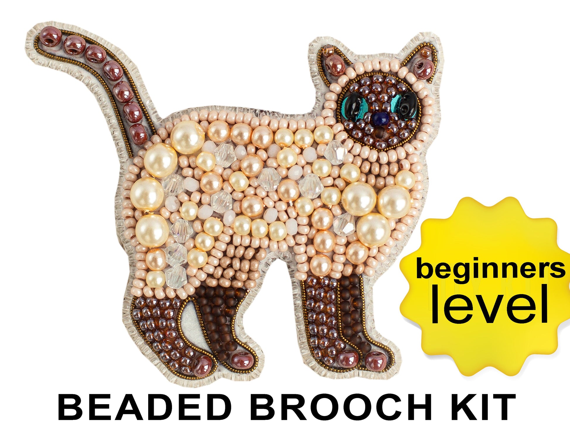 Siamese Cat Bead embroidery kit. Seed Bead Brooch kit. DIY Craft kit. Beadweaving Kit. Needlework beading. Handmade Jewelry Making Kit
