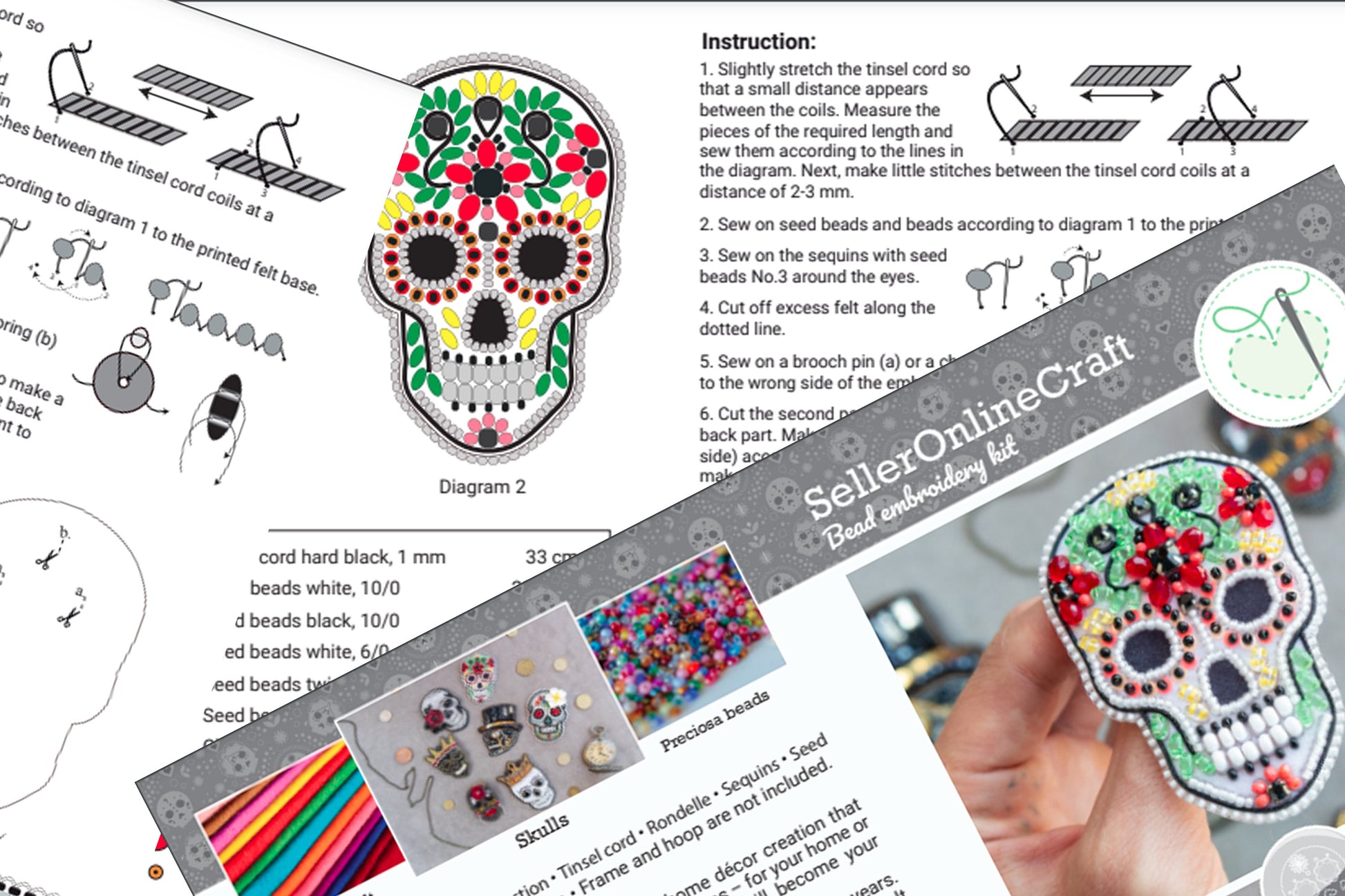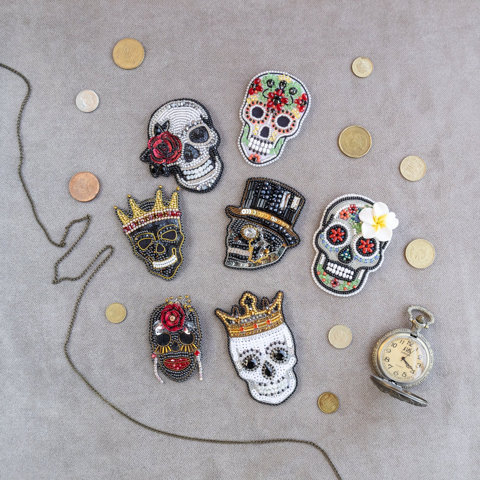 With our DIY bead embroidery kit, you will easily create a gorgeous flower skull brooch or pendant with your hands. This beginner embroidery complete kit will help you start your creative journey, even if it is your first beadwork experience. Learn a new skill, have an enjoyable time, and make a statement with a stunning floral skull brooch, patch, or pendant!