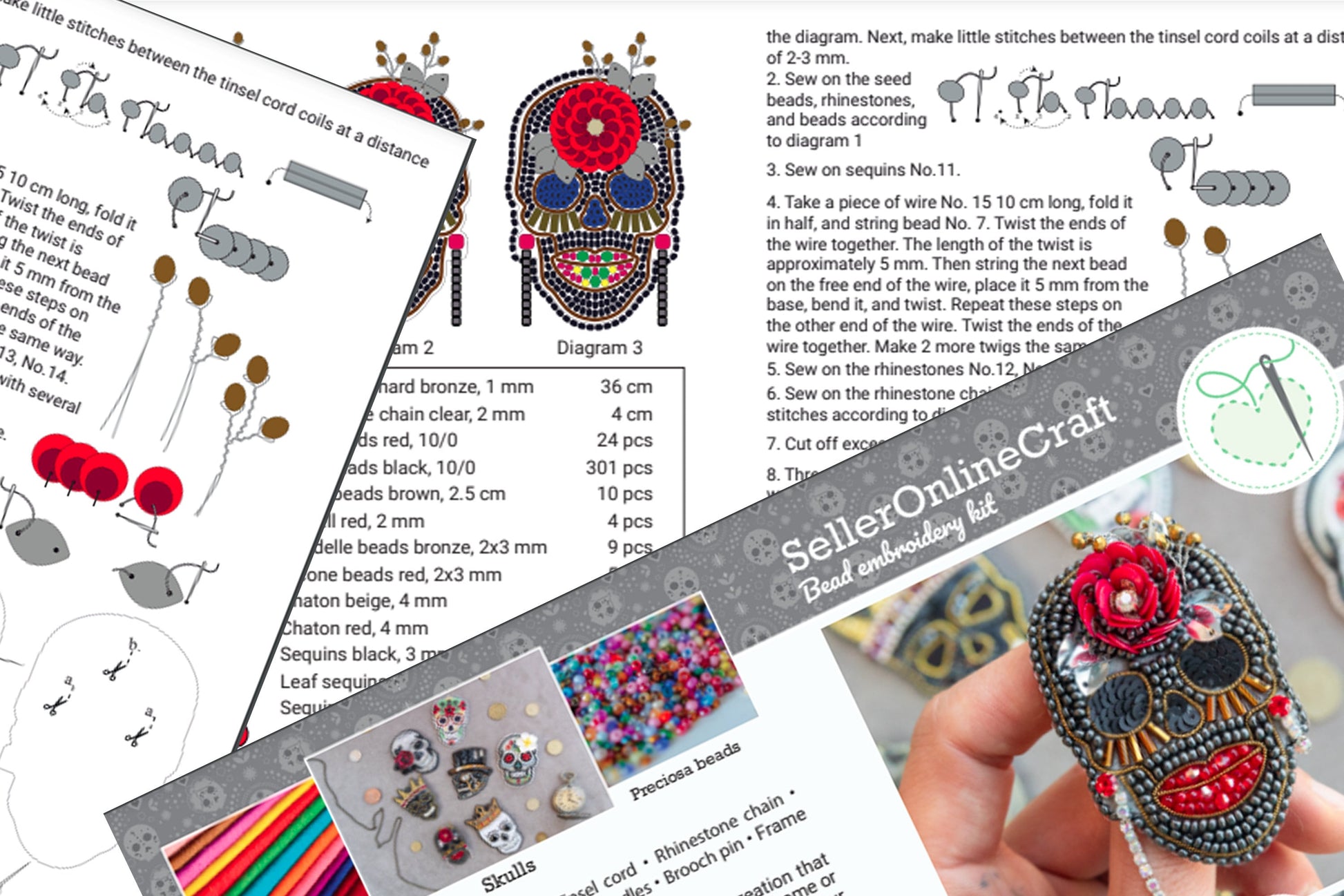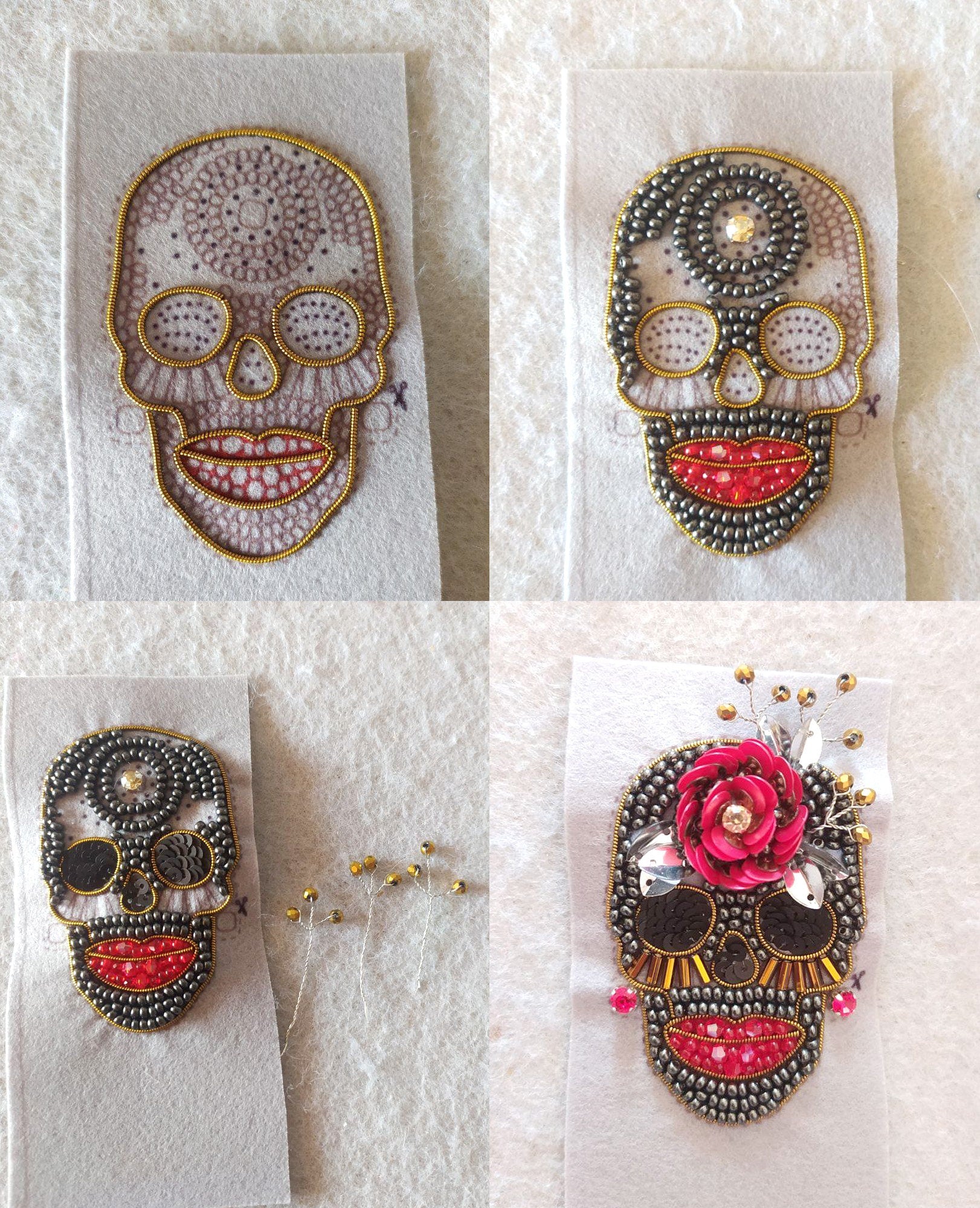 Skull Bead embroidery kit. Seed Bead Brooch kit. DIY Craft kit. Beading kit. Needlework beading. Handmade Jewelry Making Kit, Los Muertos