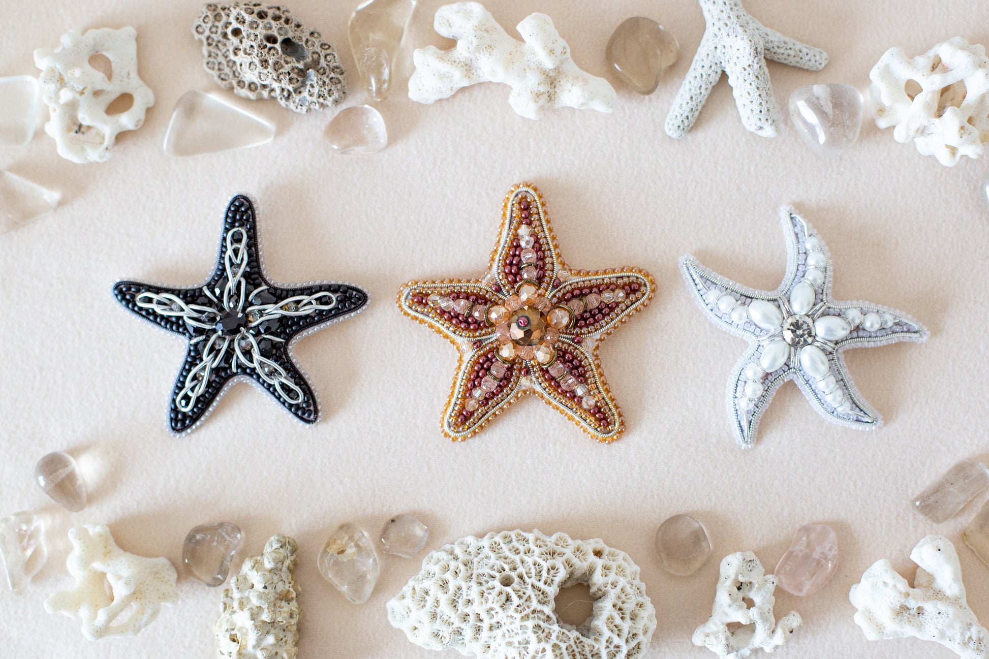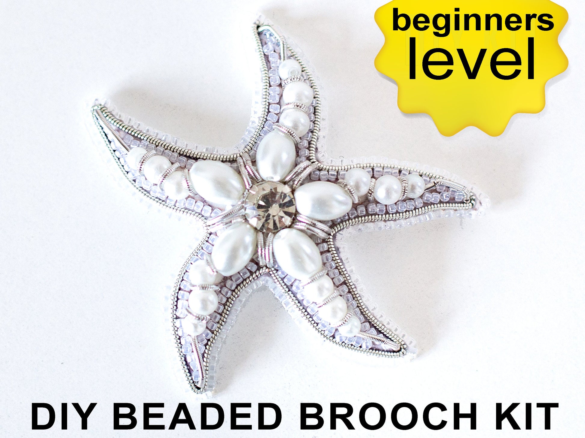 Starfish Bead Embroidery Kit. Bead Brooch kit, DIY Beaded Brooch Kit for Beginner Needlework beading