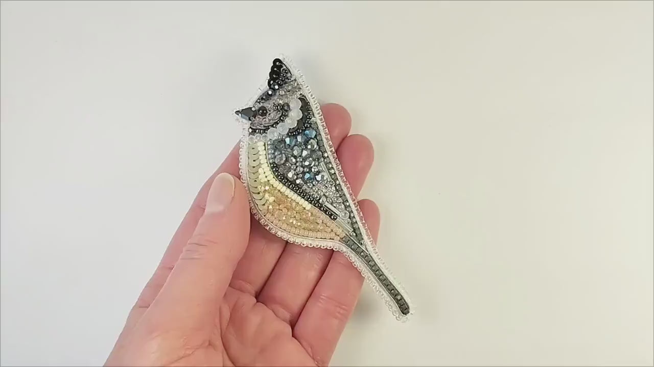 ✔ Tufted Titmouse Beaded Brooch Kit | DIY Forest Bird Craft kits, Jewelry Making Kits for Adults, Needlework beading