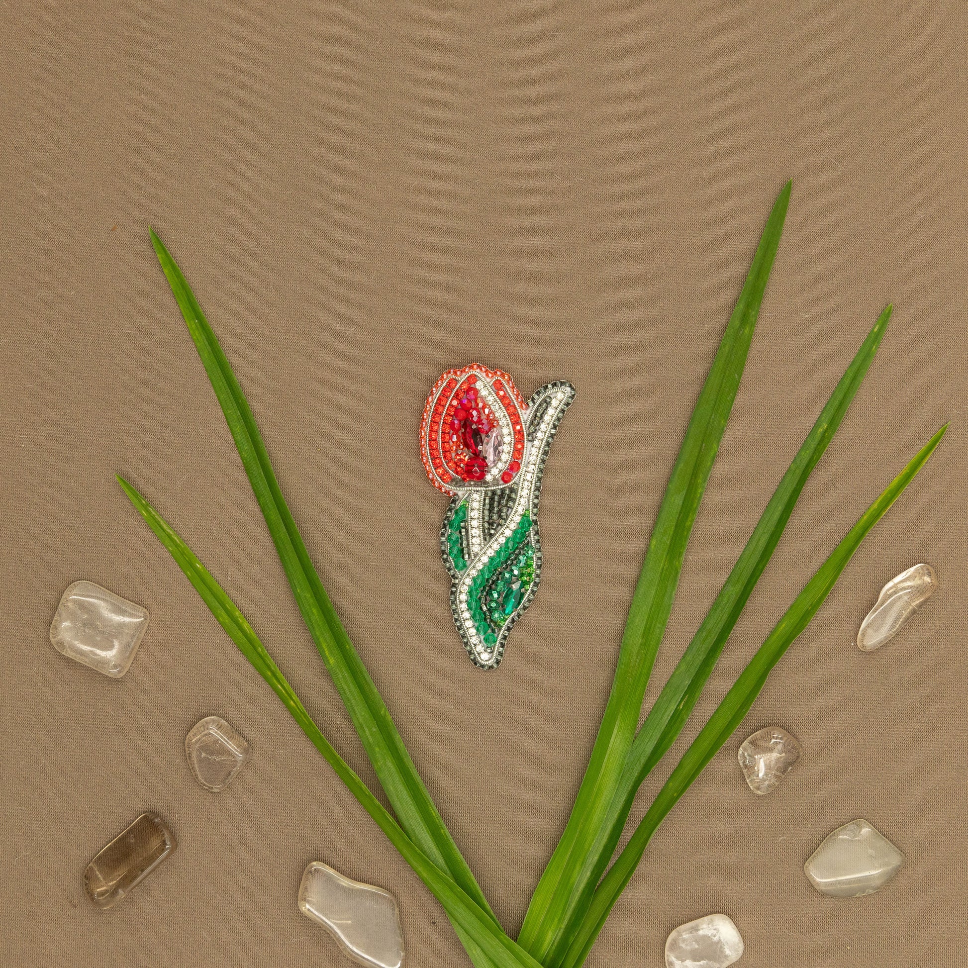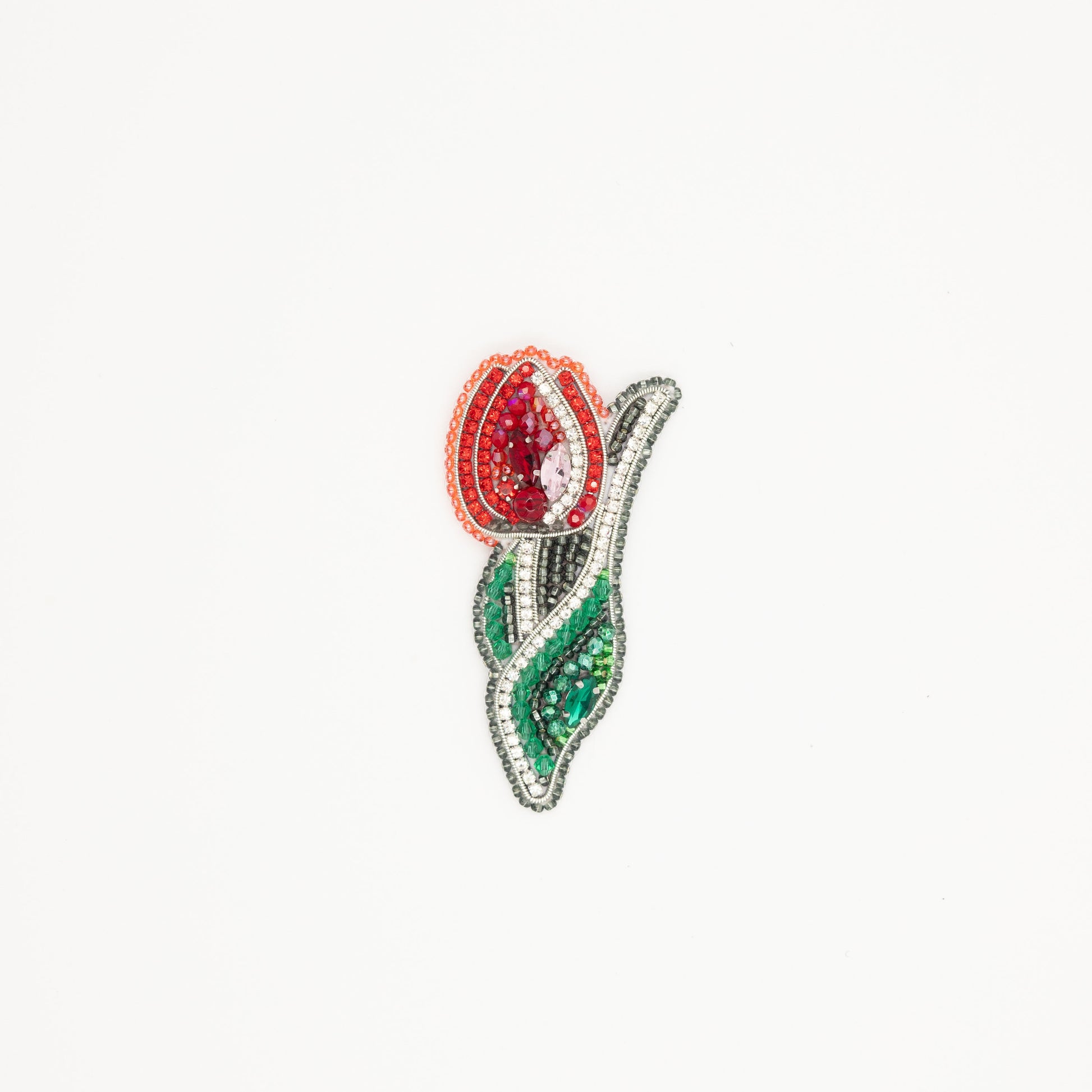 Make a beautiful tulip flower brooch or pendant with out bead embroidery kit for beginners. Create, relax, and adorn yourself with the exquisite elegance of tulip flowers. While creating this brooch you will practice yourself at various embroidery techniques - bead and sequins embroidery, embellishment with cord and rhinestone chain. Develop your hand embroidery skills and create a charming jewelry piece with your own hands!