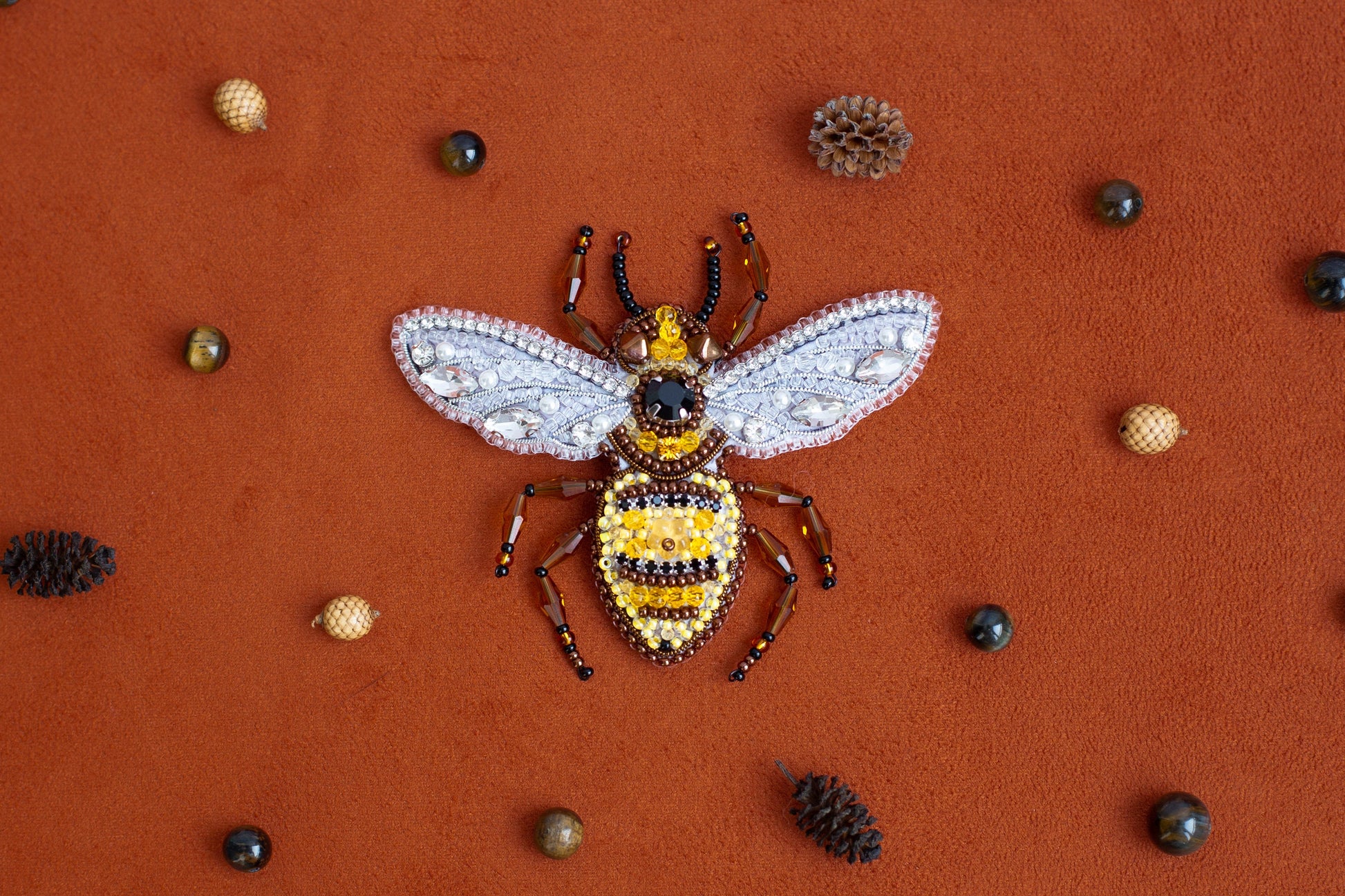 Try our DIY craft kit - bead embroidery kit set for making a unique bead brooch kit. Are you looking for a unique accessory to add to your collection? Our bead embroidery kit is the perfect solution, providing the materials and guidance to create a stylish yellow and black wasp brooch or pendant. The finished piece features honey-golden beads and rhinestones, making it an ideal accessory for summer. This DIY jewelry-making pattern is also an excellent gift idea for beginners in bead embroidery. While you could purchase an insect brooch at a handmade fair, making your own is different. A seed-beaded brooch is a unique and beautiful accessory that highlights your charm and grace. It's perfect as a lapel pin on your jacket, coat, bag, or shawl.