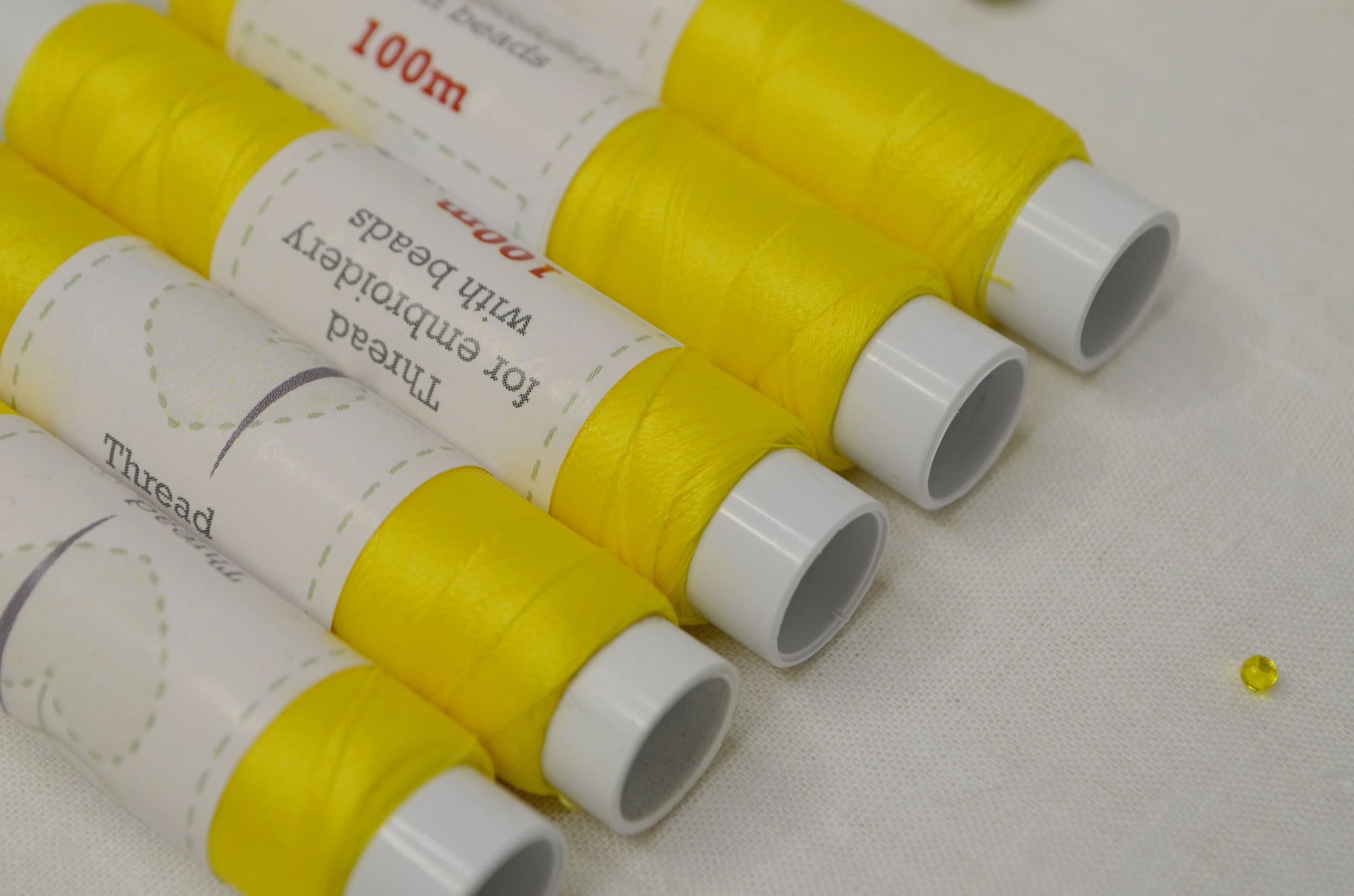 Yellow Thread 100m spools,100% polyester, Set of 5 or 10 pcs one colors, Beading embroidery threads, Sew-on rhinestones, Needlework material